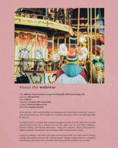 The European DBT Association invites you to a live webinar with Dr. Shireen Rizvi, a leading expert in Dialectical Behavior Therapy (DBT), for an inspiring and practical session on bringing DBT skills into everyday life.